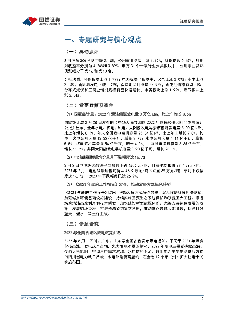 国信证券:环保公用2023年3月投资策略:《2023年政府工作报告》发布,推动新型能源体系建设和节能降碳.pdf