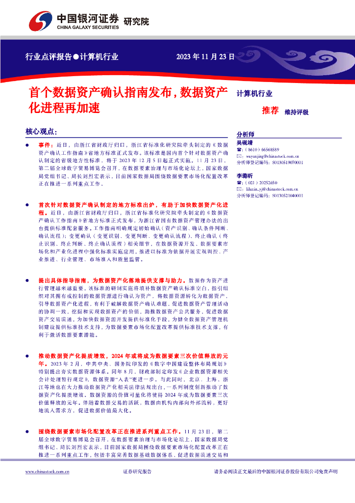中国银河:计算机行业:首个数据资产确认指南发布,数据资产化进程再加速.pdf