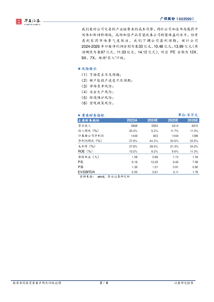 华安证券:广信股份(603599)-短期业绩承压下滑,长期产业链布局持续完善.pdf