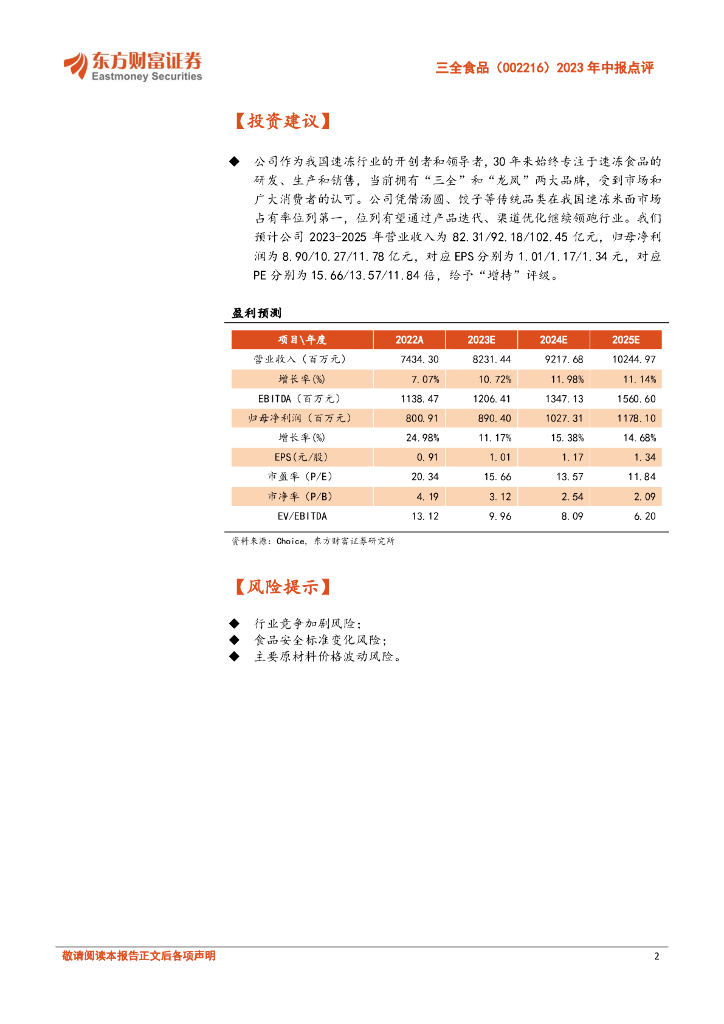 东方财富证券:三全食品(002216)-2023年中报点评:业绩稳中向好,调制食品增势强劲.pdf