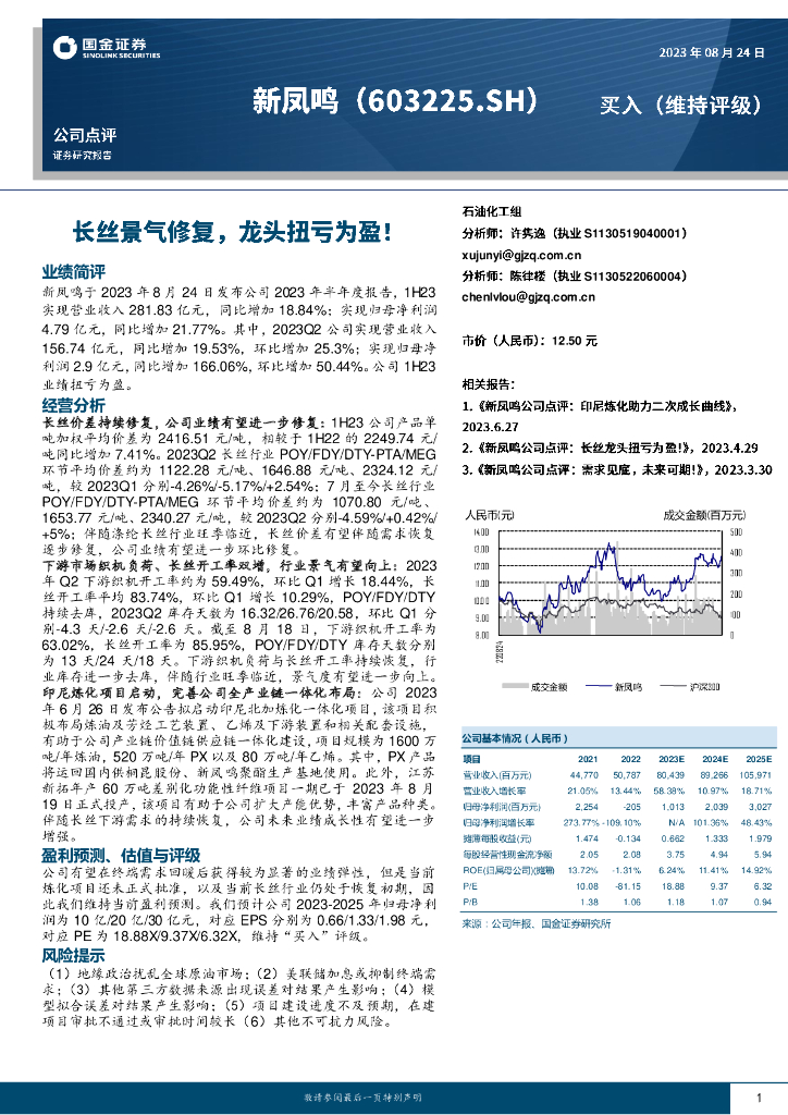 国金证券:新凤鸣(603225)-长丝景气修复,龙头扭亏为盈!.pdf
