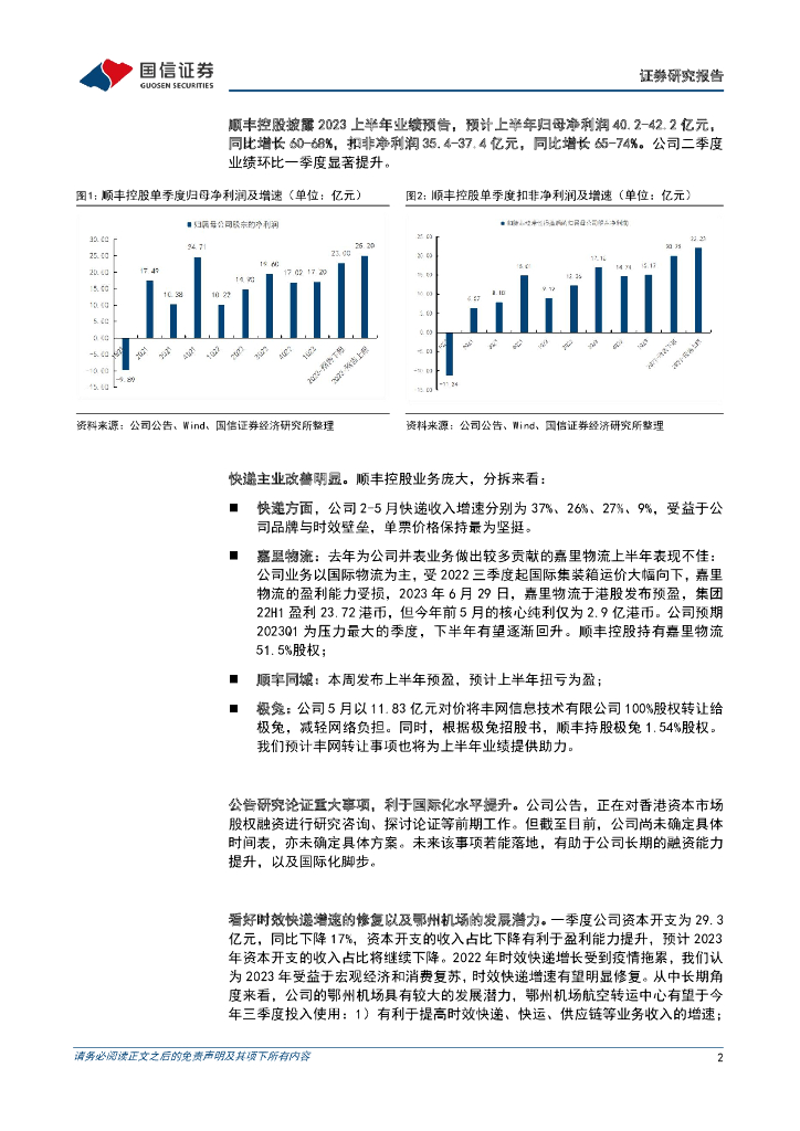 国信证券:顺丰控股(002352)-二季度主业环比向上,期待鄂州机场与国际化进程.pdf