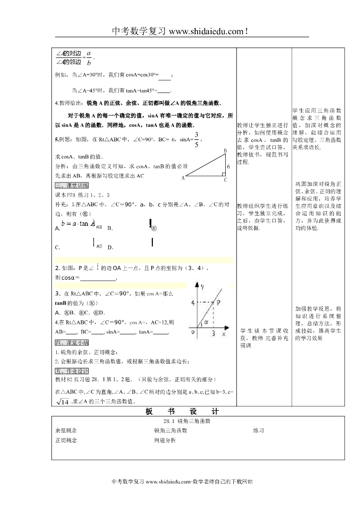 人教版数学九下《28.1锐角三角形》word教案(2).doc
