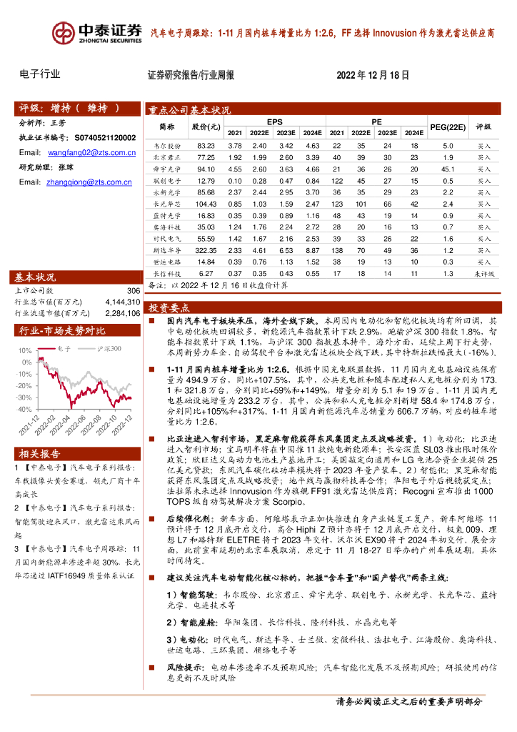 中泰证券:汽车电子周跟踪:1-11月国内桩车增量比为1:2.6,FF选择Innovusion作为激光雷达供应商.pdf