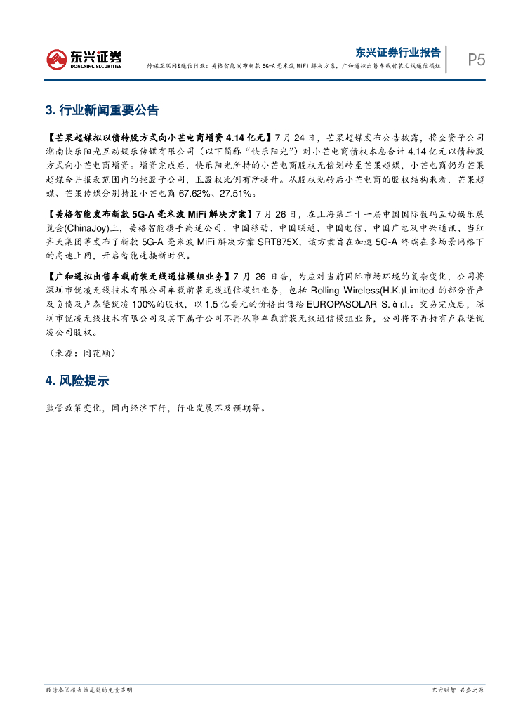 东兴证券:传媒互联网&通信行业:美格智能发布新款5G-A毫米波MiFi解决方案,广和通拟出售车载前装无线通信模组业务.pdf