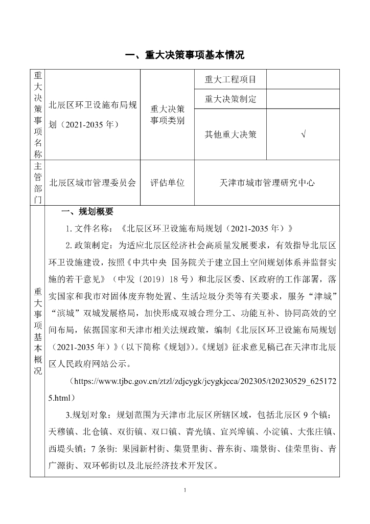 北辰区环卫设施布局规划(2021-2035年)社会稳定风险评估报告(征求意见稿).pdf