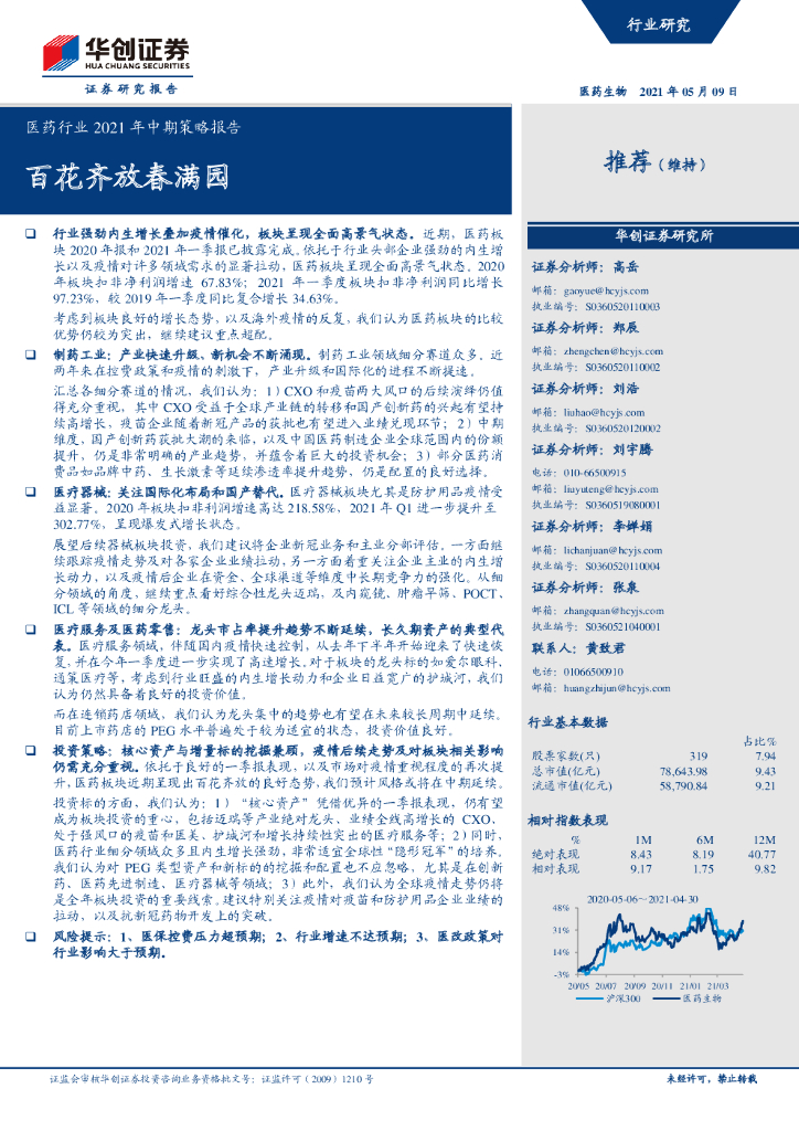 华创证券:医药行业2021年中期策略报告——百花齐放春满园.pdf
