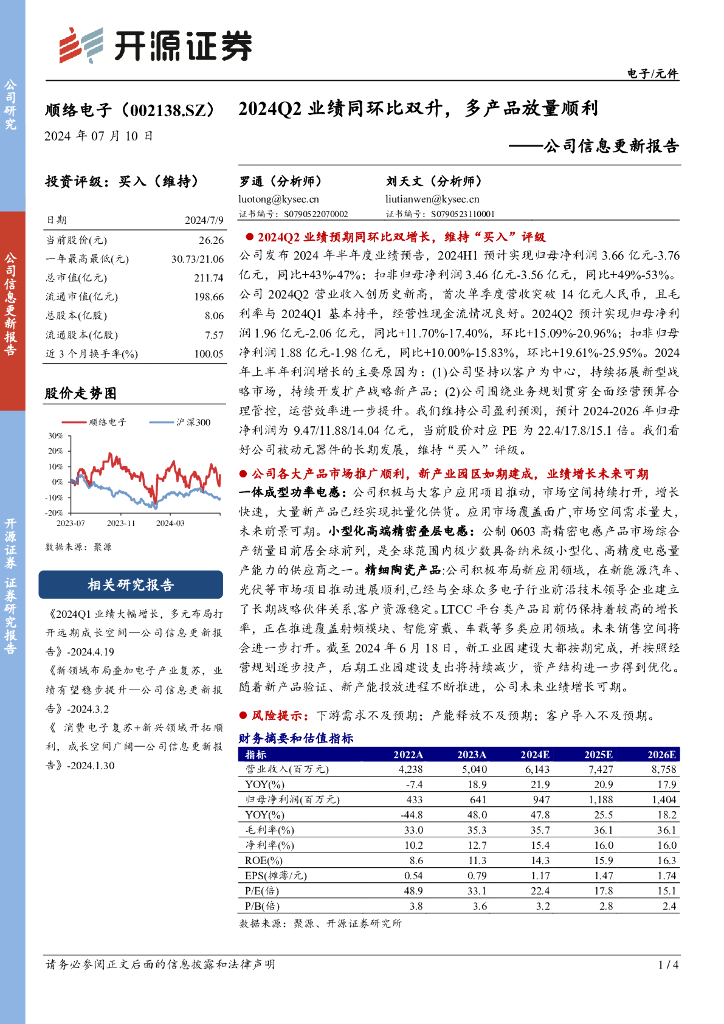 开源证券:顺络电子(002138)-公司信息更新报告:2024Q2业绩同环比双升,多产品放量顺利.pdf