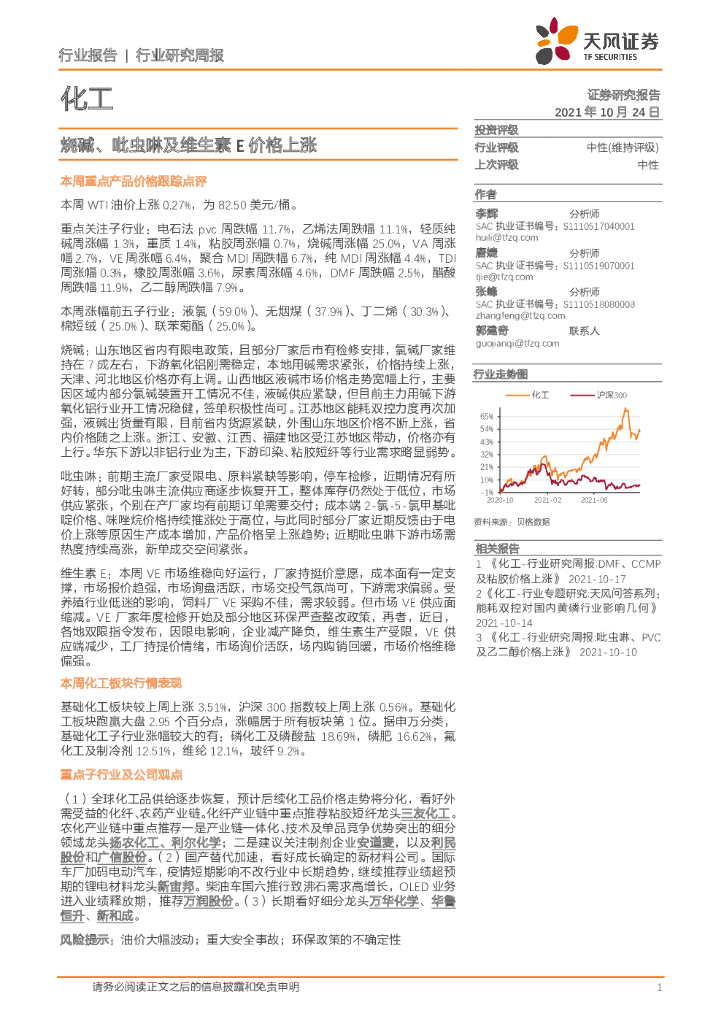 天风证券:化工行业研究周报:烧碱、吡虫啉及维生素E价格上涨.pdf