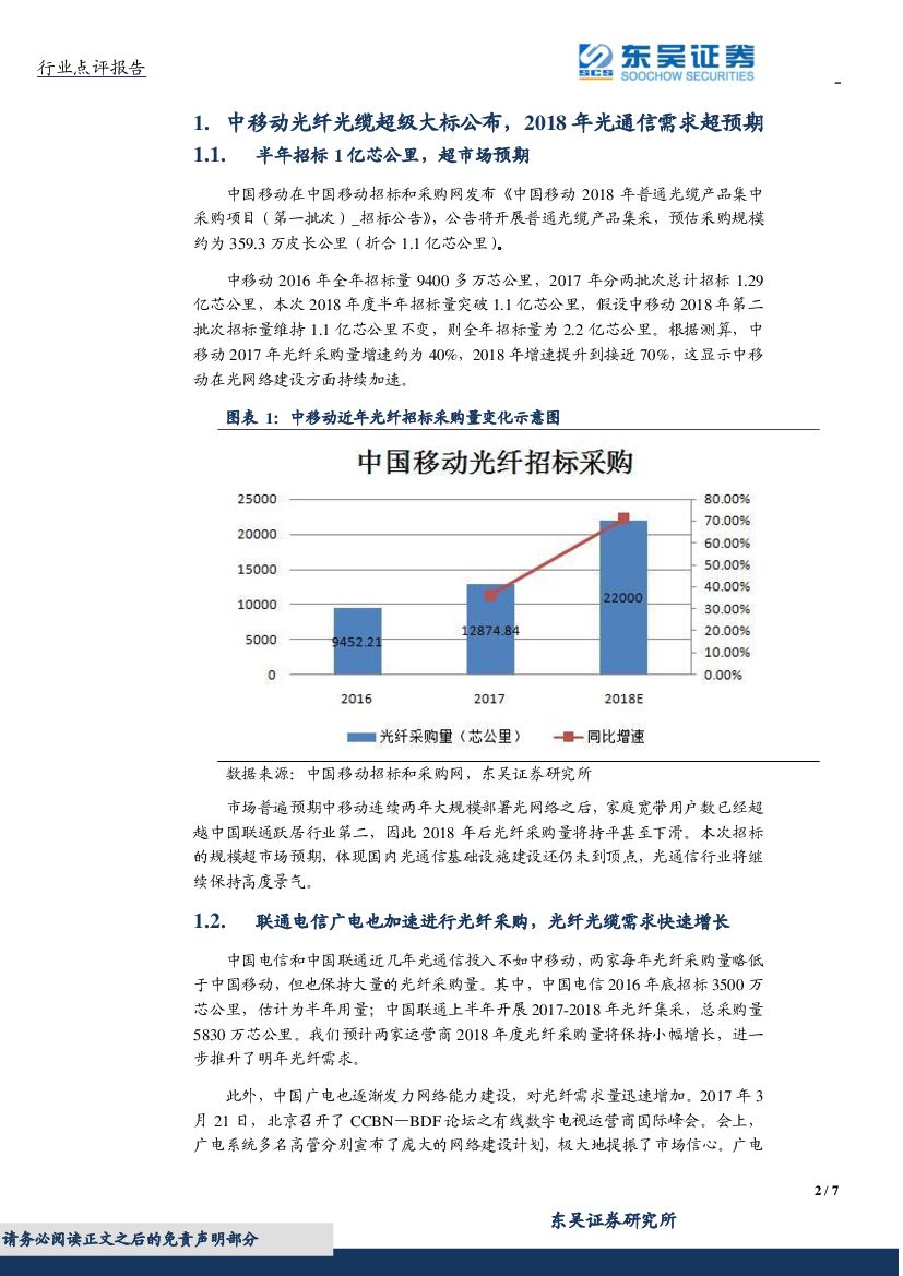 东吴证券:通信运营:中移动光缆招标规模创新高,光通信保持高度景气.pdf