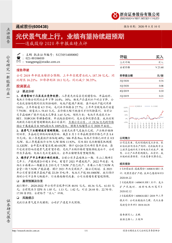 浙商证券:通威股份2020年中报业绩点评:光伏景气度上行,业绩有望持续超预期.pdf
