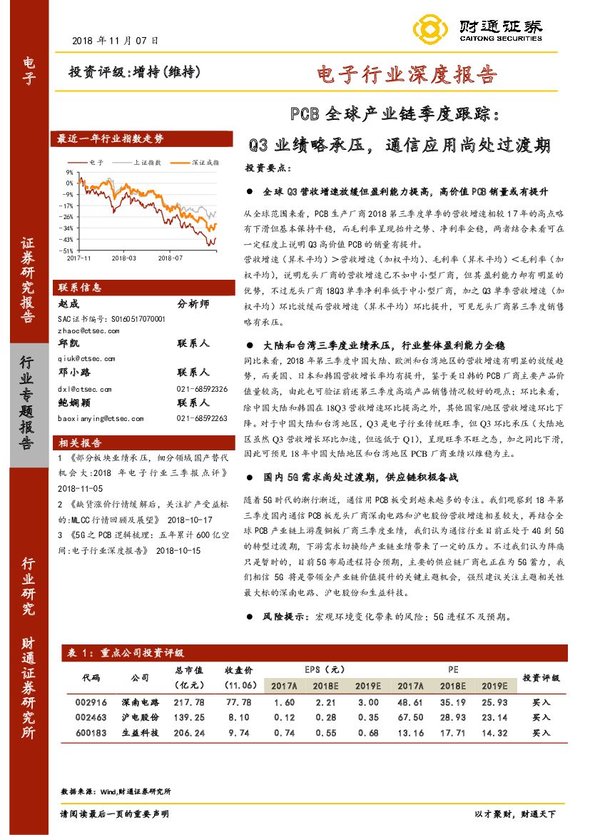 财通证券:电子行业深度报告:PCB全球产业链季度跟踪-Q3业绩略承压,通信应用尚处过渡期.pdf