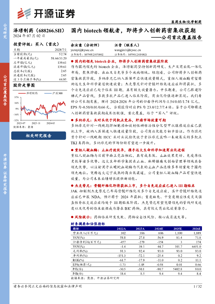 开源证券:泽璟制药(688266)-公司首次覆盖报告:国内biotech领航者,即将步入创新药密集收获期.pdf