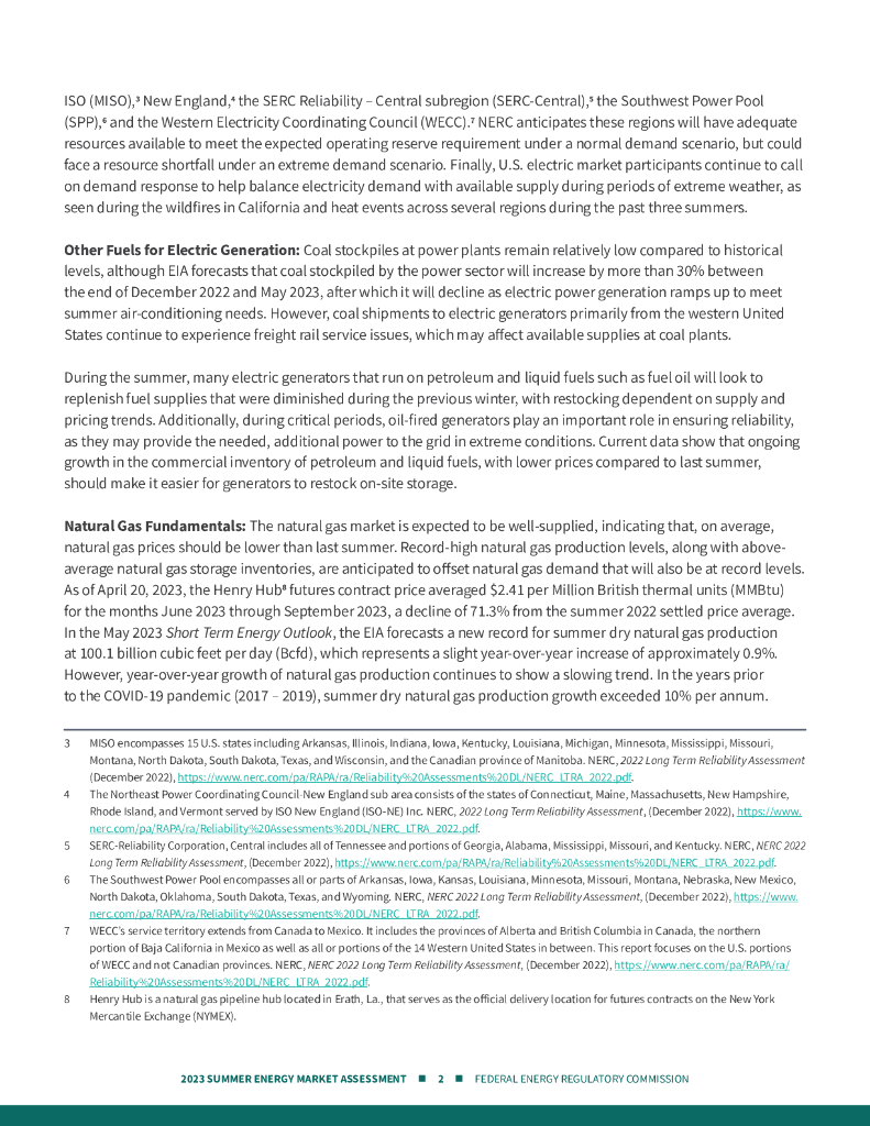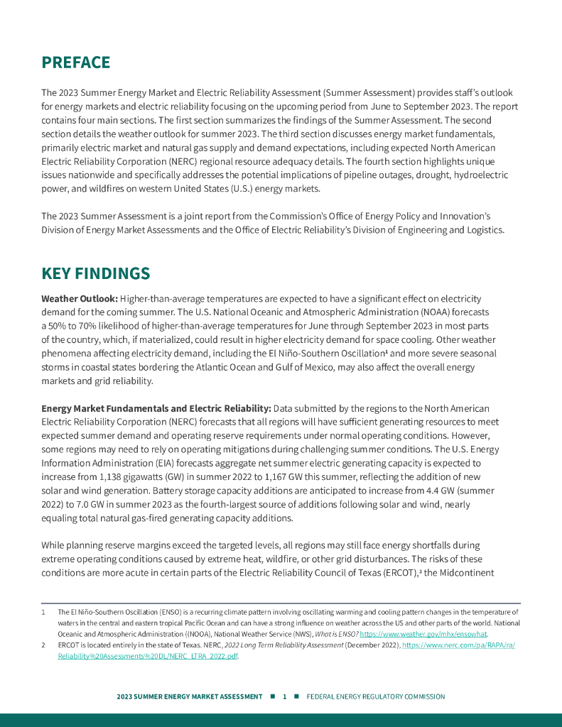美国联邦能源管理委员会:2023夏季能源市场和电力可靠性评估(英文版).pdf