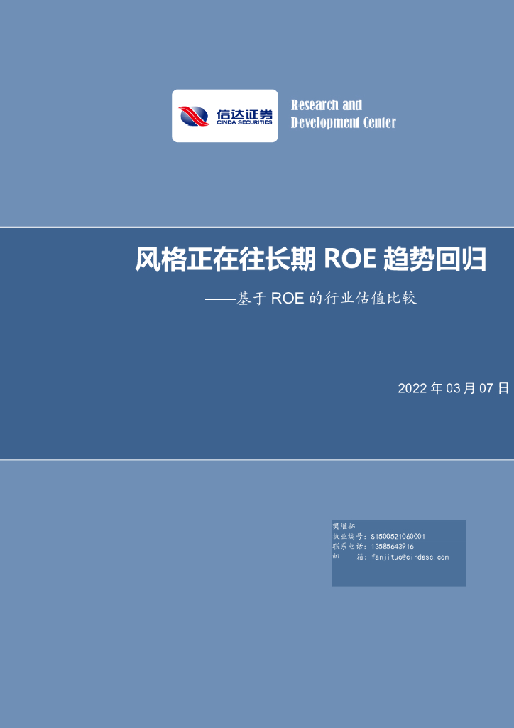 信达证券:基于ROE的行业估值比较:风格正在往长期ROE趋势回归.pdf