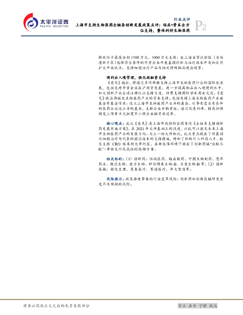 太平洋证券:生物医药Ⅱ:上海市支持生物医药全链条创新发展政策点评:临床+资本全方位支持,整体利好生物医药.pdf