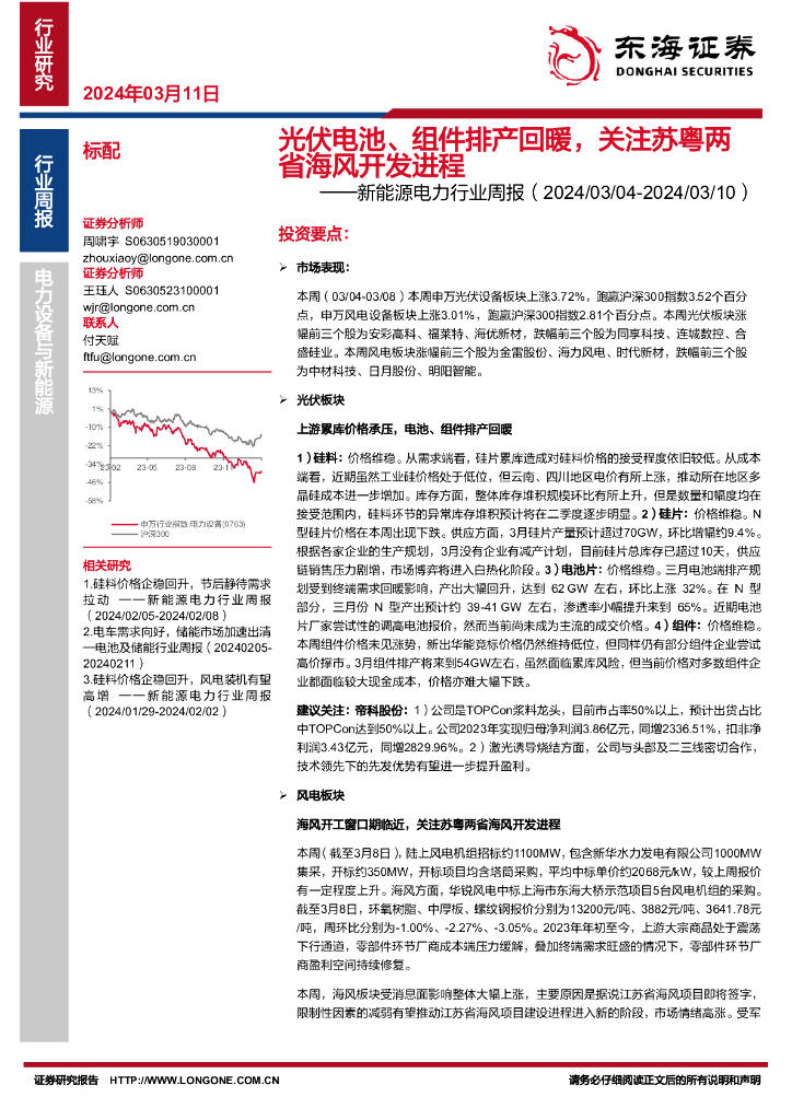 东海证券:光伏电池、组件排产回暖,关注苏粤两省海风开发进程.pdf