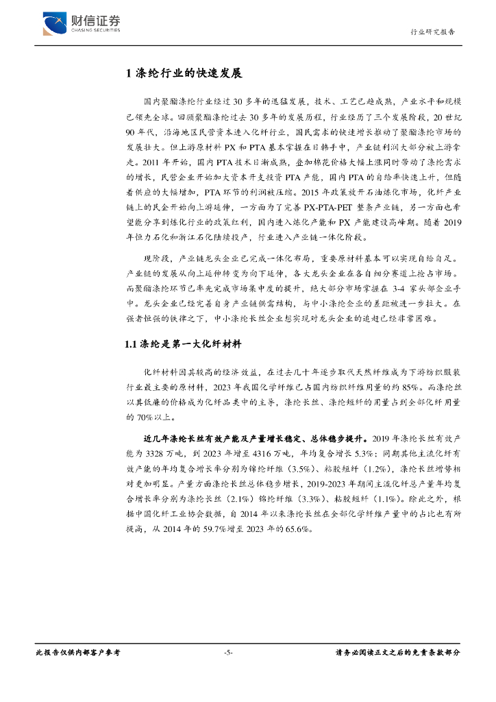 财信证券:涤纶长丝行业深度:行业量变到质变,竞争格局改善有望提振利润.pdf