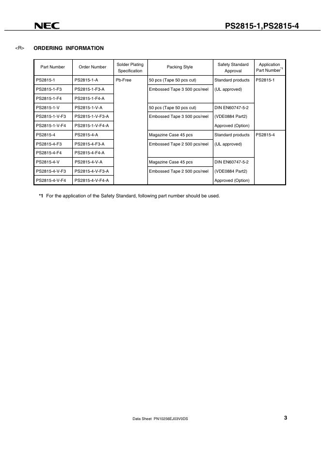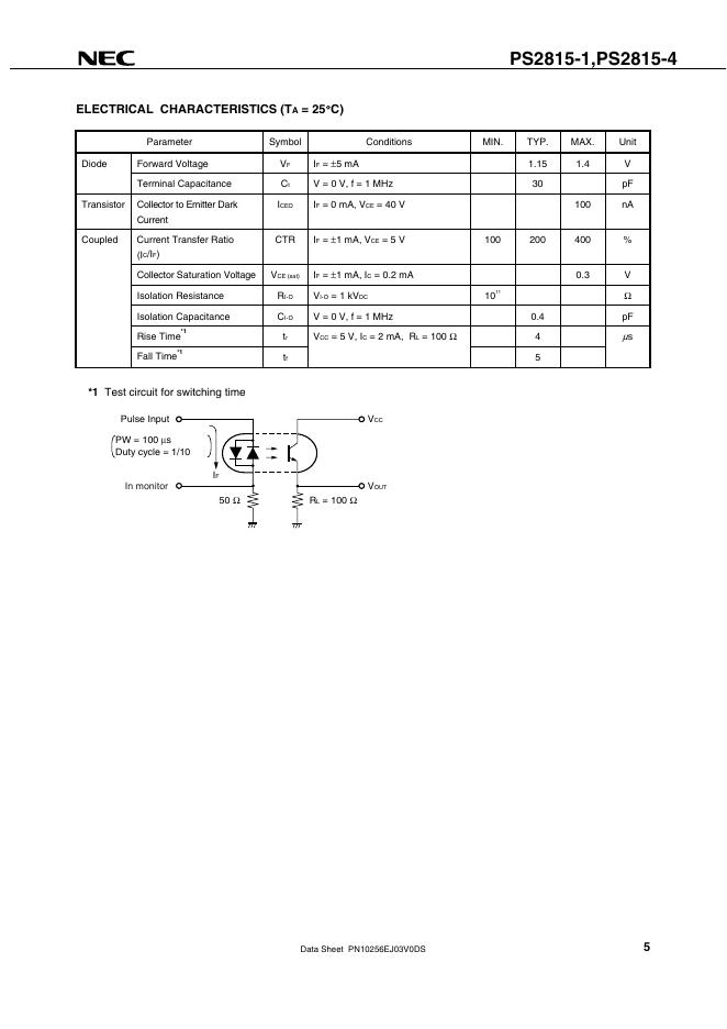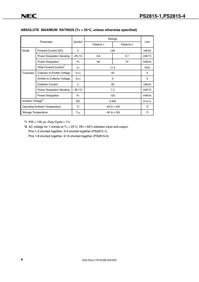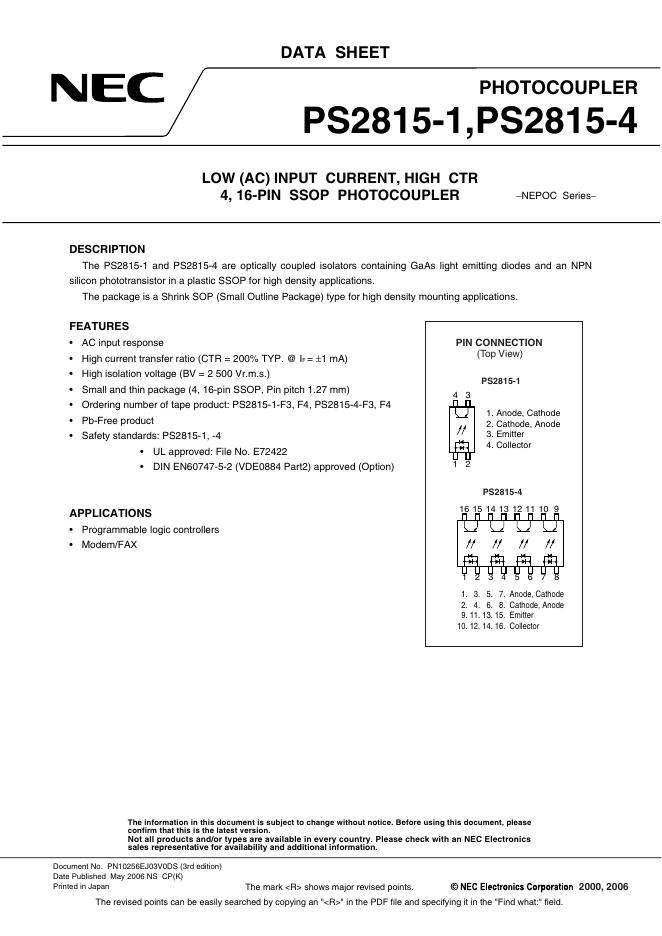 NEC PHOTOCOUPLER PS2815-1,PS2815-4 数据手册.pdf