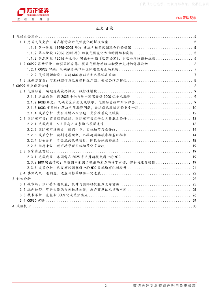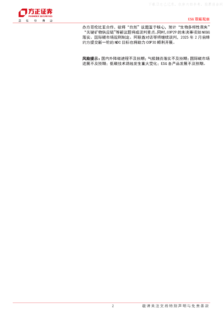 方正证券:ESG双碳观察:COP29延期闭幕,达成“巴库气候团结契约”一揽子平衡成果.pdf
