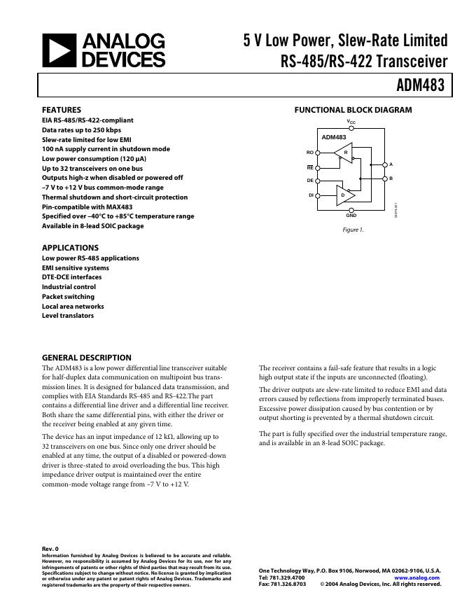 ANALOG DEVICES ADM483 英文产品数据手册 Rev 0.pdf