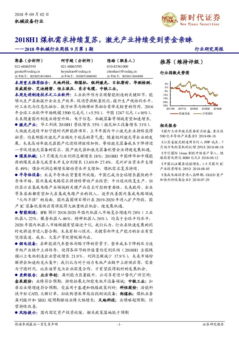 新时代证券:2018年机械行业周报9月第1期:2018H1煤机需求持续复苏,激光产业持续受到资金亲睐.pdf