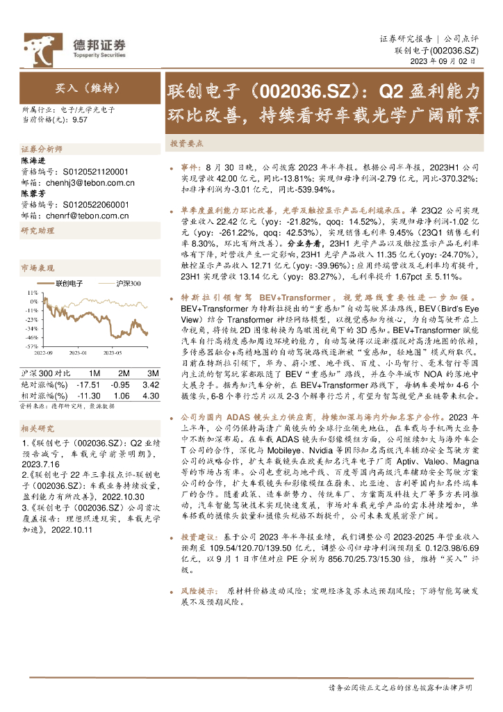 德邦证券:联创电子(002036)-Q2盈利能力环比改善,持续看好车载光学广阔前景.pdf