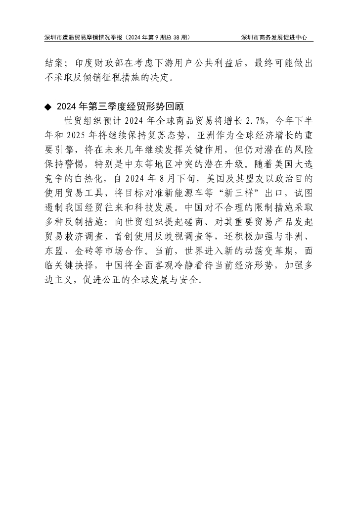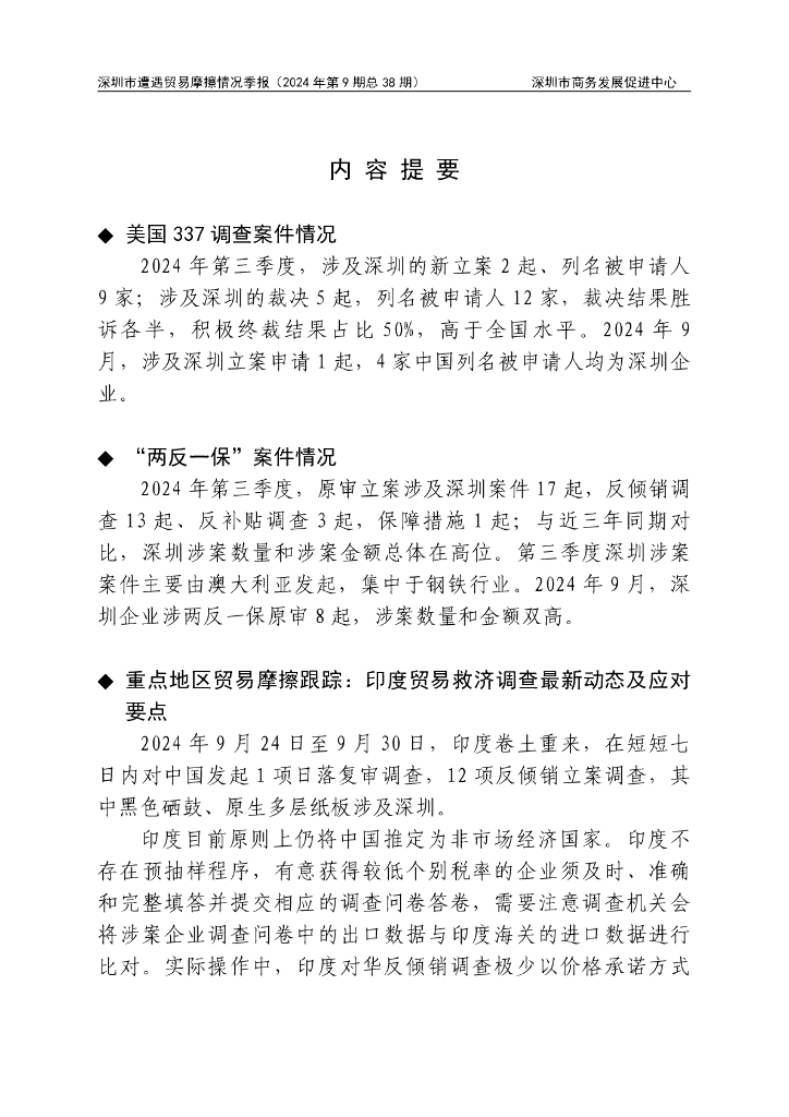深圳市商务发展促进中心:2024年第三季度深圳市遭遇贸易摩擦情况季报.pdf