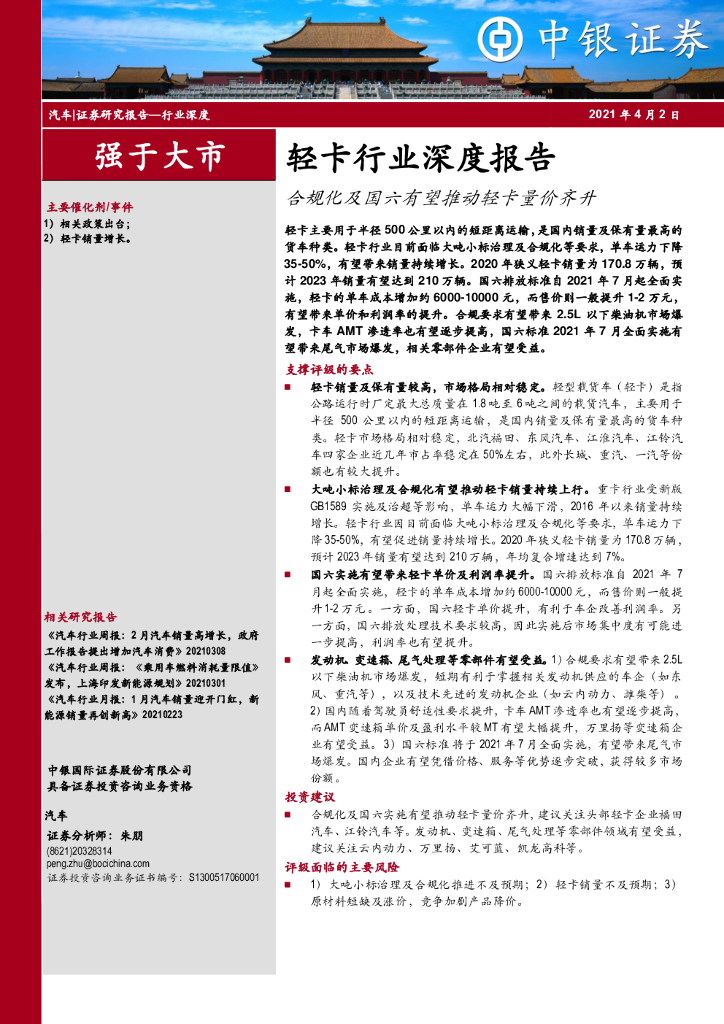 中银证券:轻卡行业深度报告:合规化及国六有望推动轻卡量价齐升.pdf