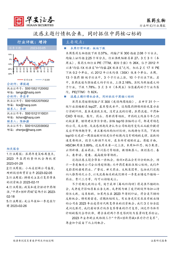 华安证券:医药生物行业周报:流感主题行情机会来,同时抓住中药核心标的.pdf