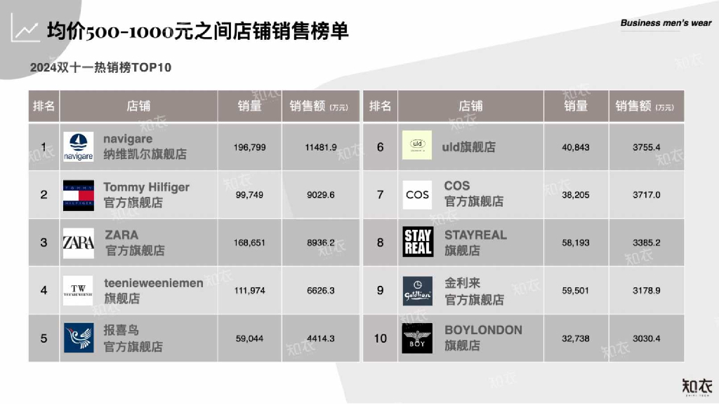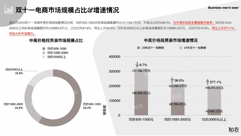 知衣科技:2024年淘宝天猫“双十一”中高价位段男装数据复盘报告.pdf