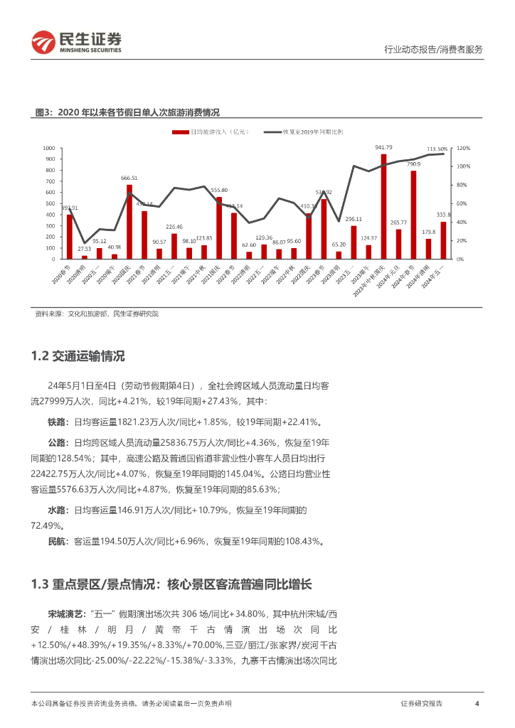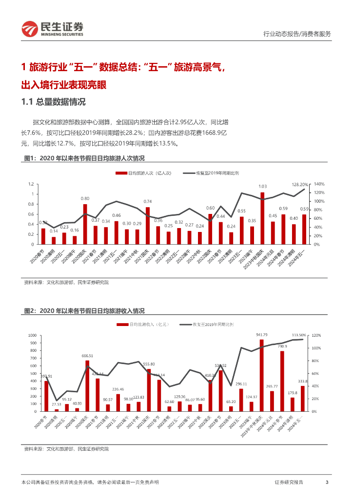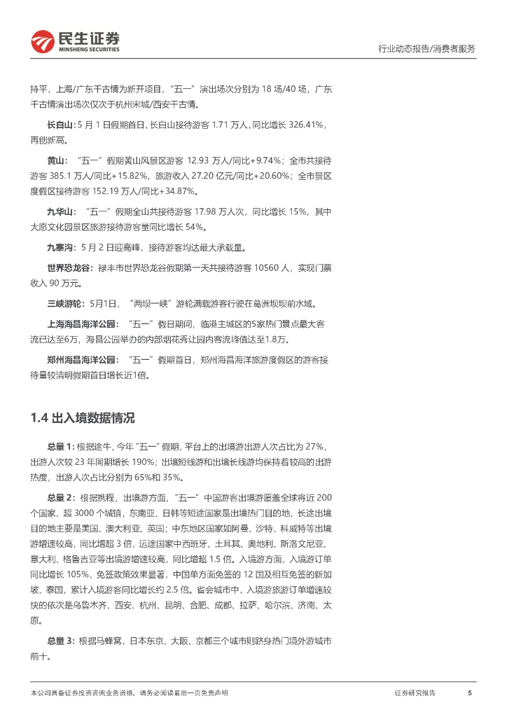 民生证券:旅游行业“五一”数据总结:“五一”旅游高景气,出入境旅游行业表现亮眼.pdf