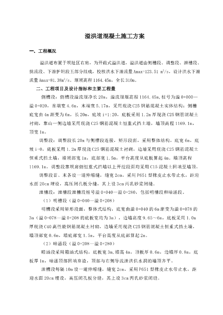 开敞式溢洪道混凝土施工方案.doc