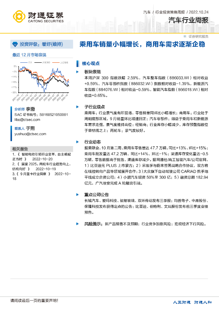 财通证券:汽车行业周报:乘用车销量小幅增长,商用车需求逐渐企稳.pdf
