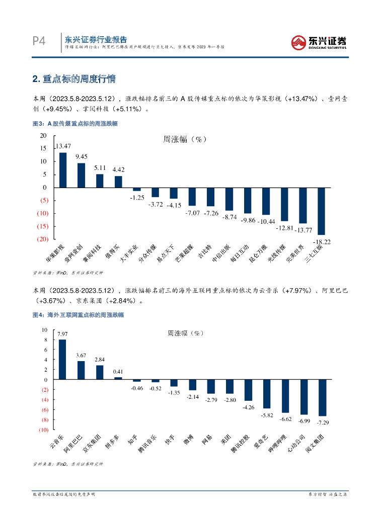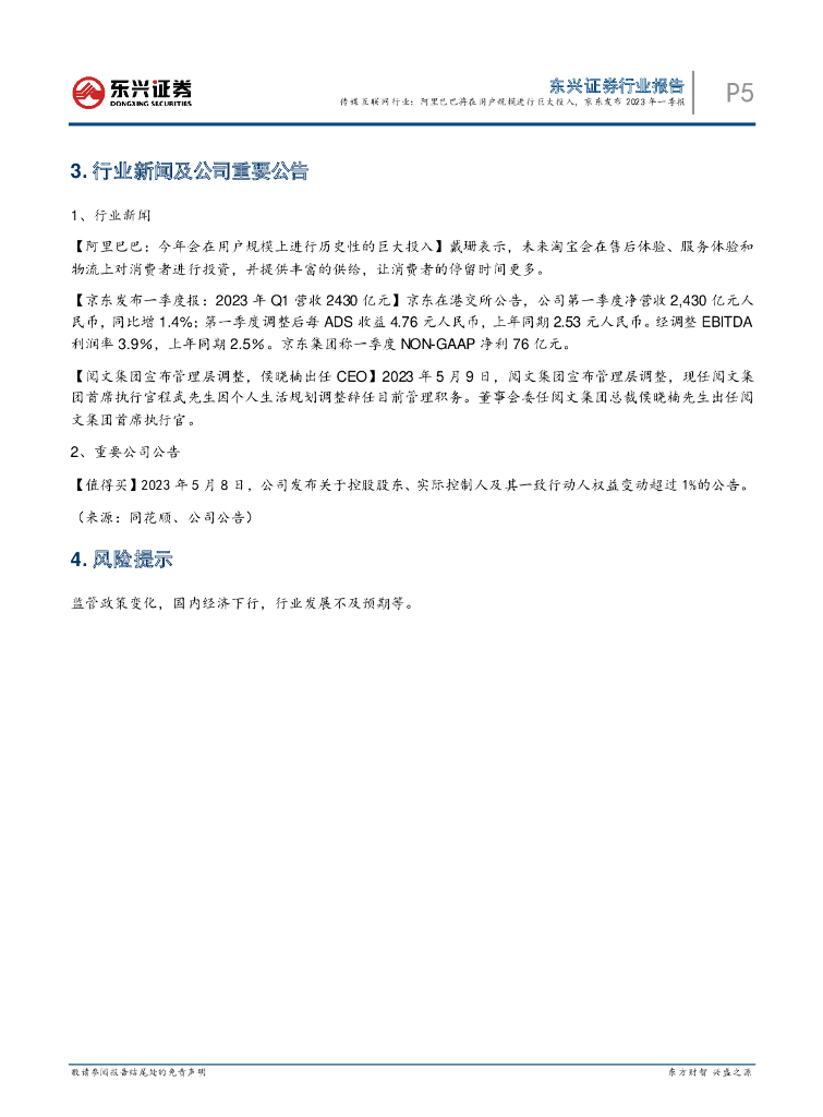 东兴证券:传媒互联网行业:阿里巴巴将在用户规模进行巨大投入,京东发布2023年一季报.pdf