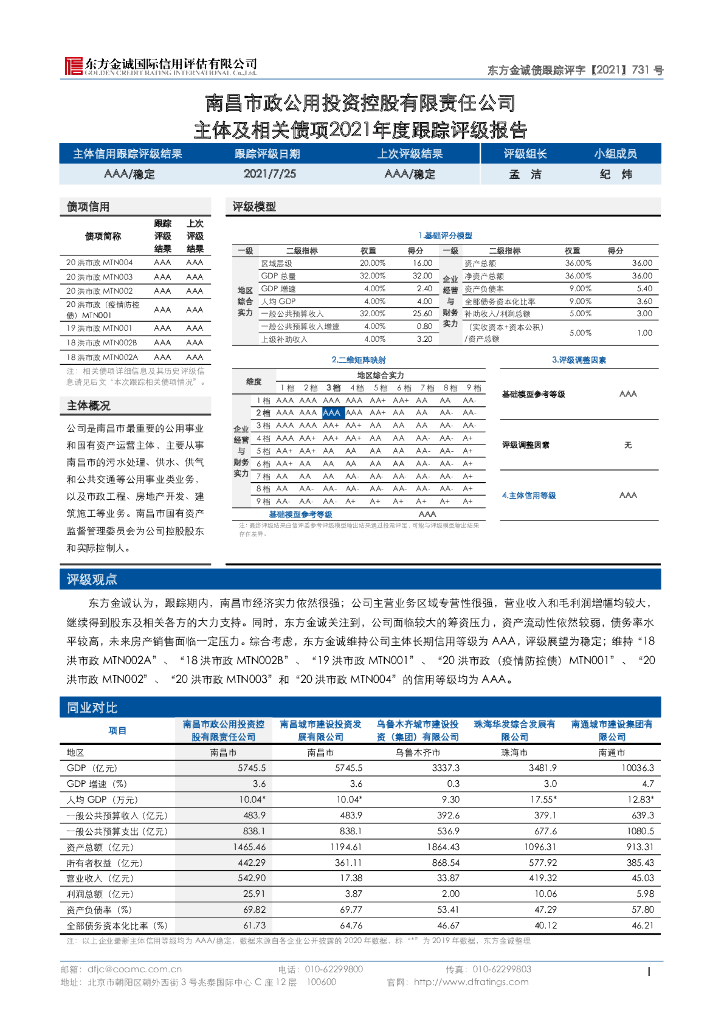东方金诚:南昌市政公用投资控股有限责任公司主体信用评级报告及跟踪评级安排.pdf