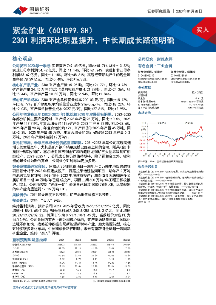 国信证券:紫金矿业(601899)-23Q1利润环比明显提升,中长期成长路径明确.pdf