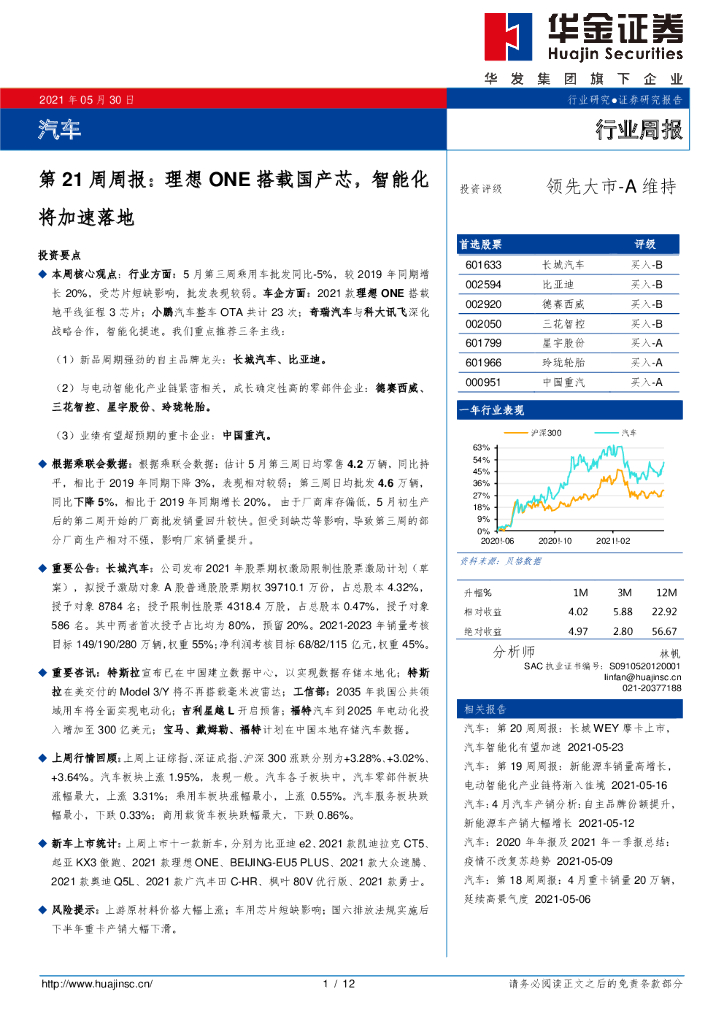 华金证券:汽车第21周周报:理想ONE搭载国产芯,智能化将加速落地.pdf