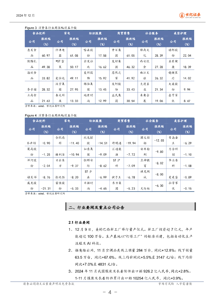 世纪证券:大消费行业周报(第一期):板块迎政策催化,以旧换新效果明显.pdf