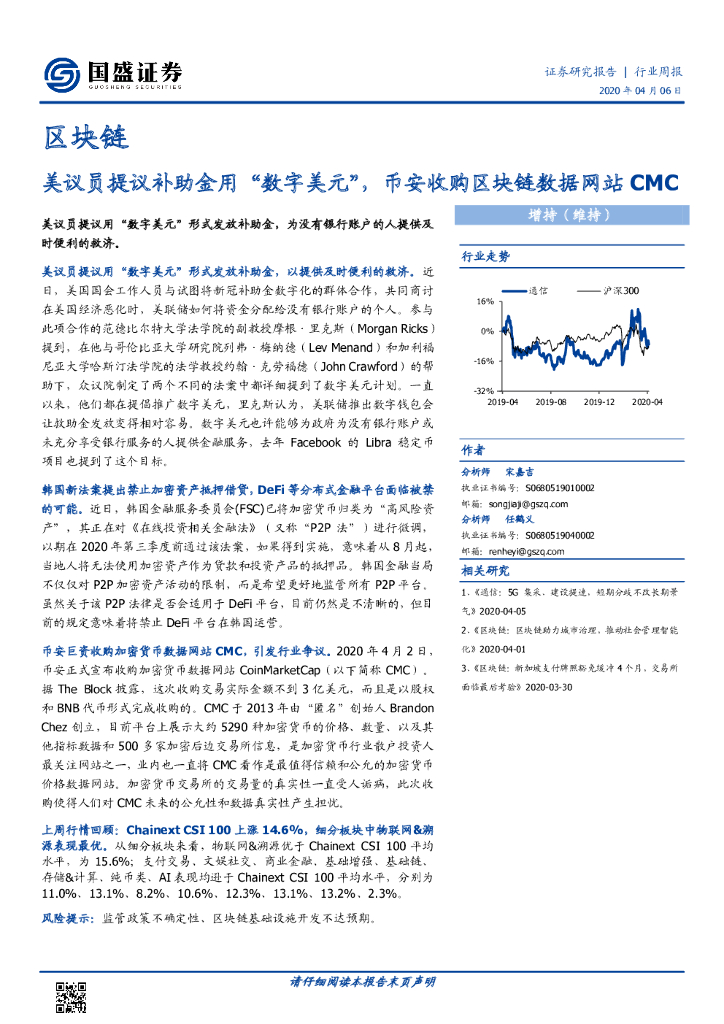 国盛证券:区块链行业周报:美议员提议补助金用“数字美元”,币安收购区块链数据网站CMC.pdf