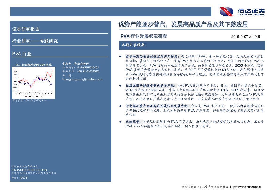 信达证券:PVA行业发展状况研究:优势产能逐步替代,发展高品质产品及其下游应用.pdf