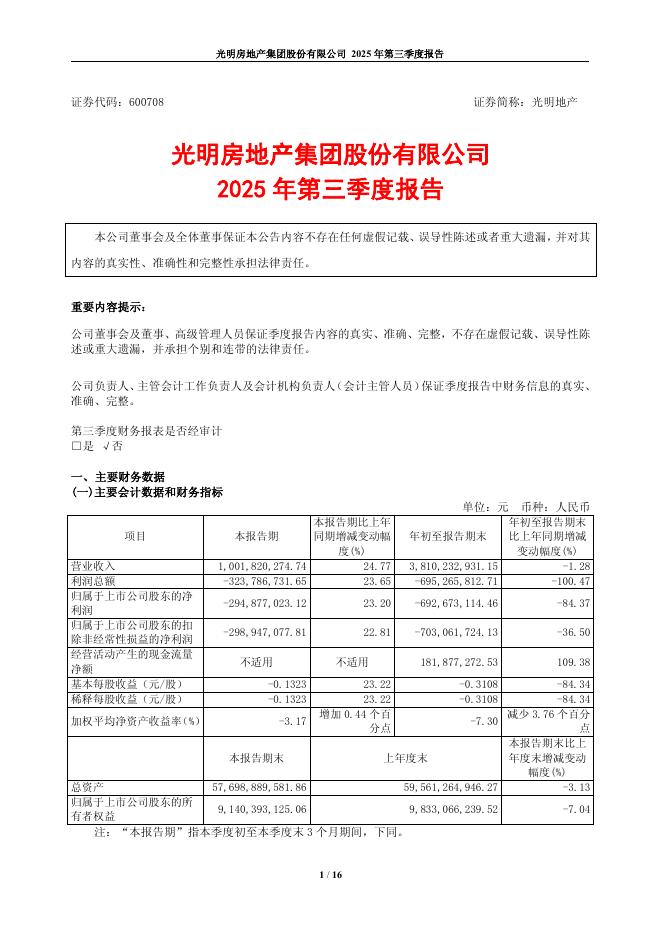 600708-光明地产:光明地产2025年第三季度报告.pdf