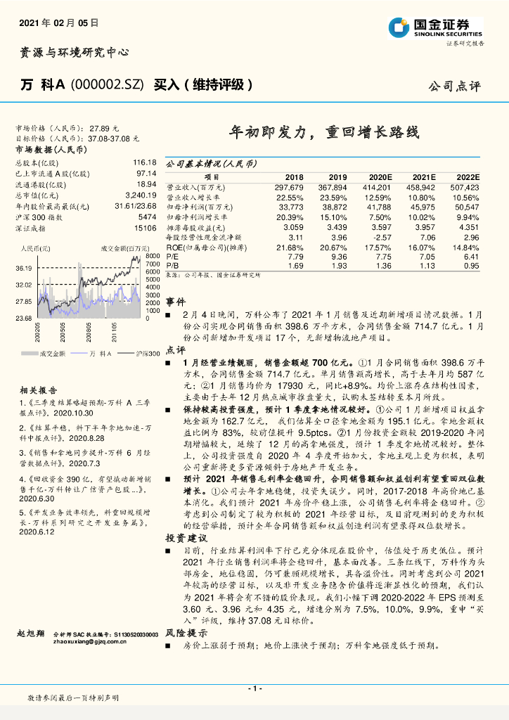 国金证券:万科A(000002)-年初即发力,重回增长路线.pdf