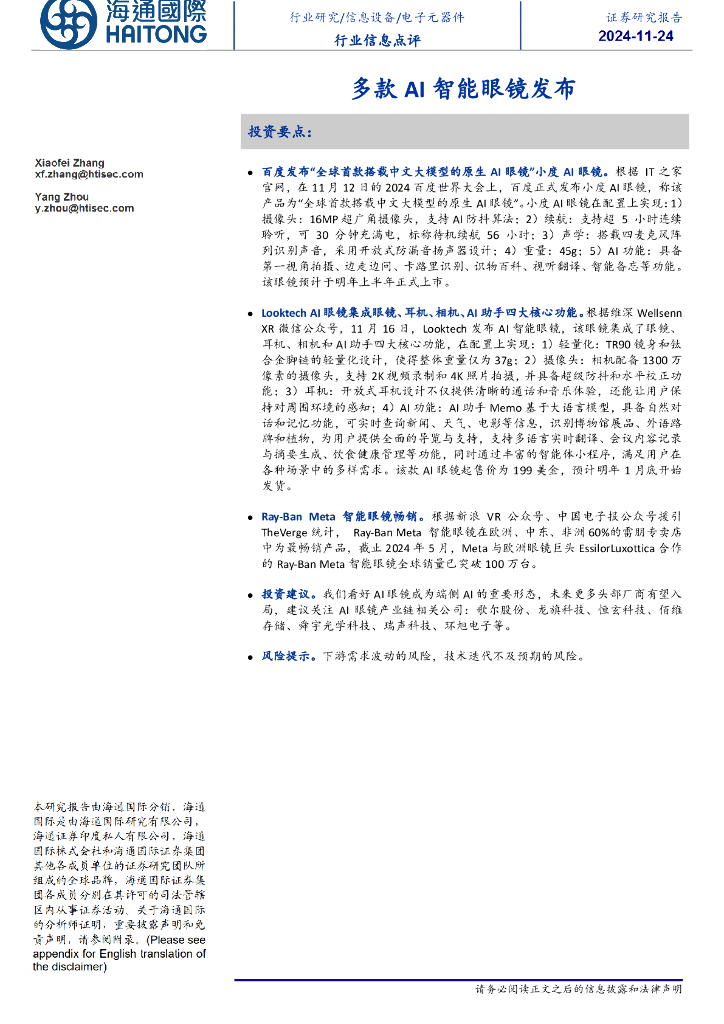 海通国际:电子元器件行业信息点评:多款AI智能眼镜发布.pdf