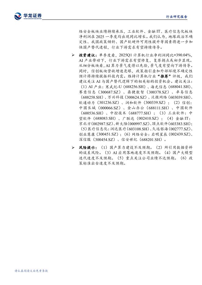 华龙证券:计算机行业2024年年报及2025年一季报综述:AI产业高景气度初步验证,单季拐点信号出现.pdf