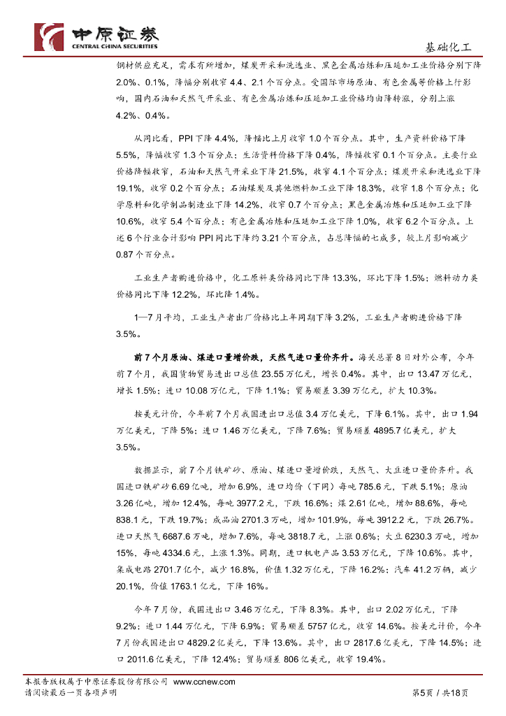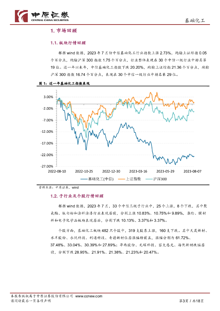 中原证券:基础化工行业月报:化工品价格总体回暖,关注制冷剂、轮胎与涤纶长丝行业.pdf
