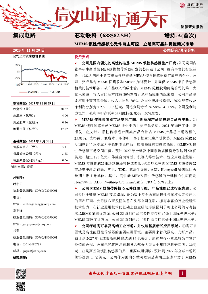 山西证券:芯动联科(688582)-MEMS惯性传感核心元件自主可控,立足高可靠并拥抱新兴市场.pdf