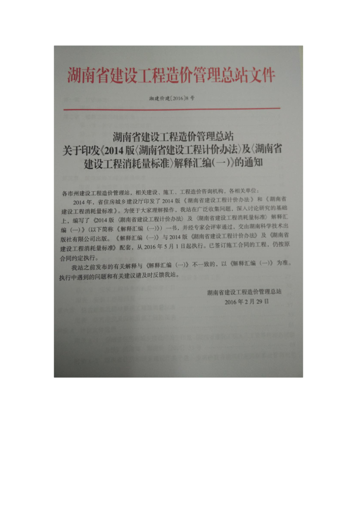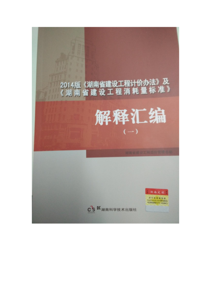 2014年《湖南省建设工程计价办法》及《湖南省建设工程消耗量标准》解释汇编(一).pdf