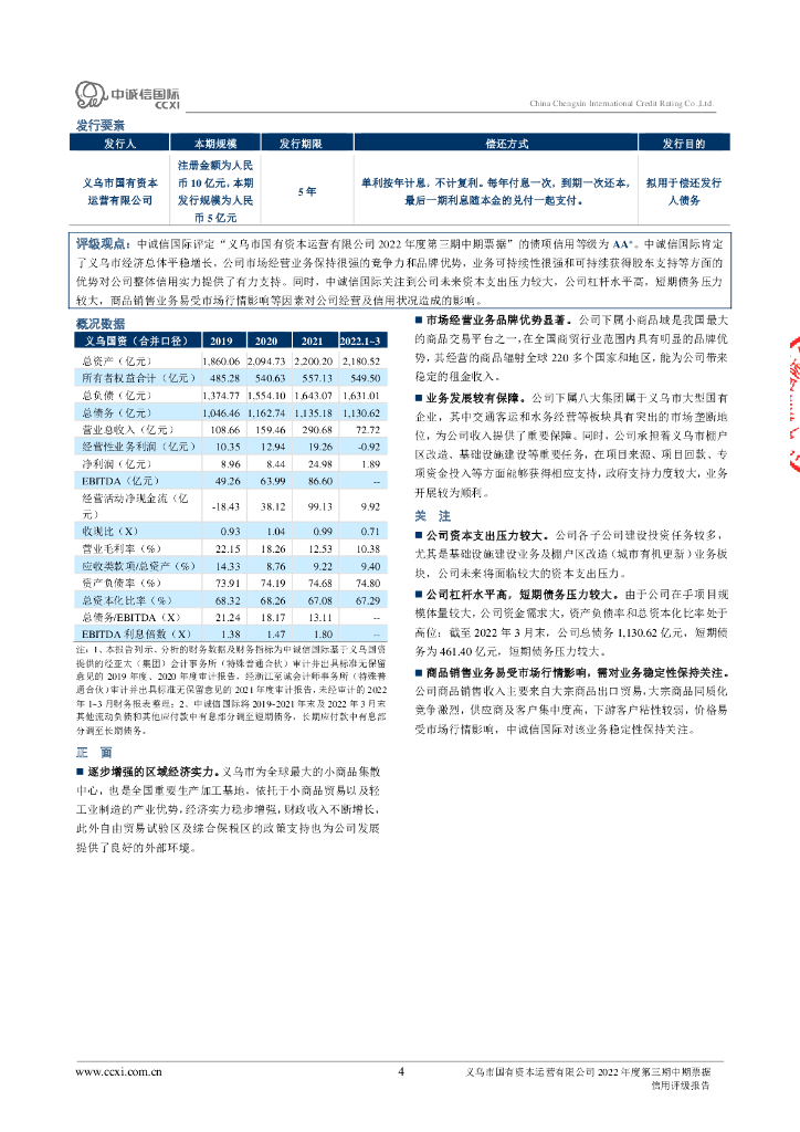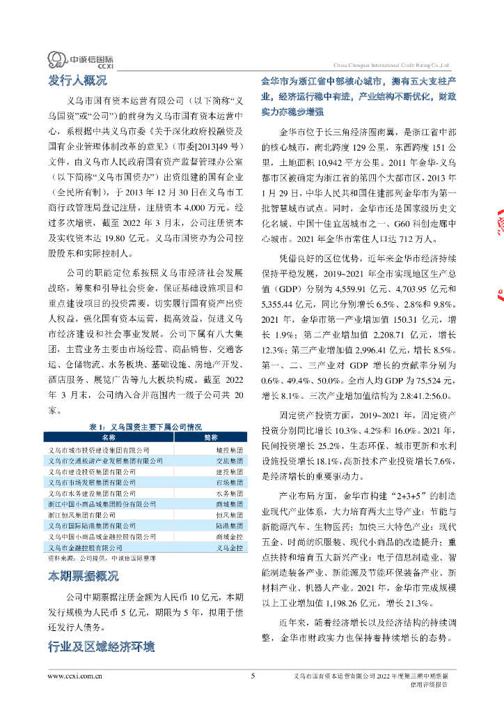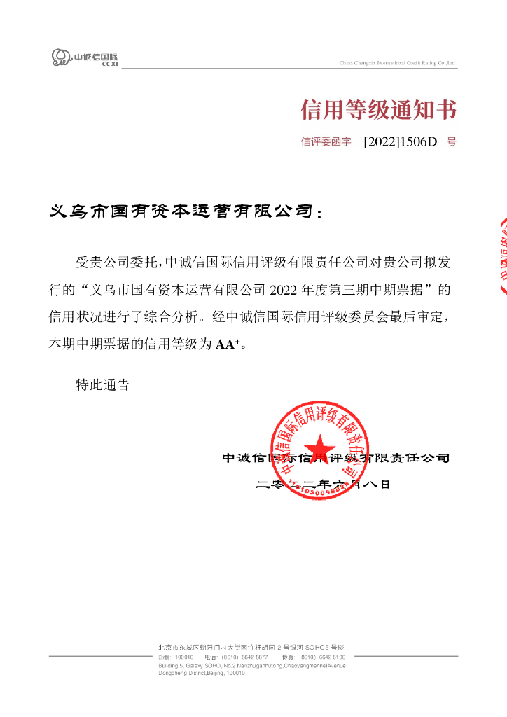 中诚信:义乌市国有资本运营有限公司2022年度第三期中期票据债项信用评级报告及跟踪评级安排.pdf