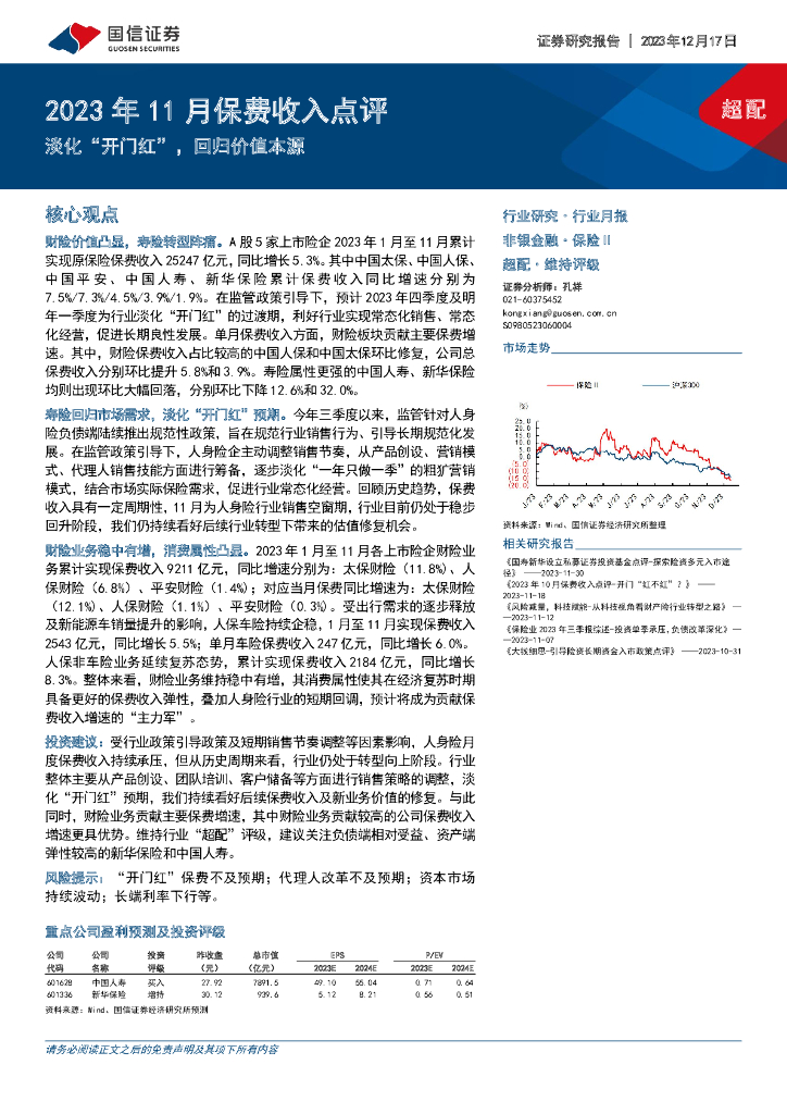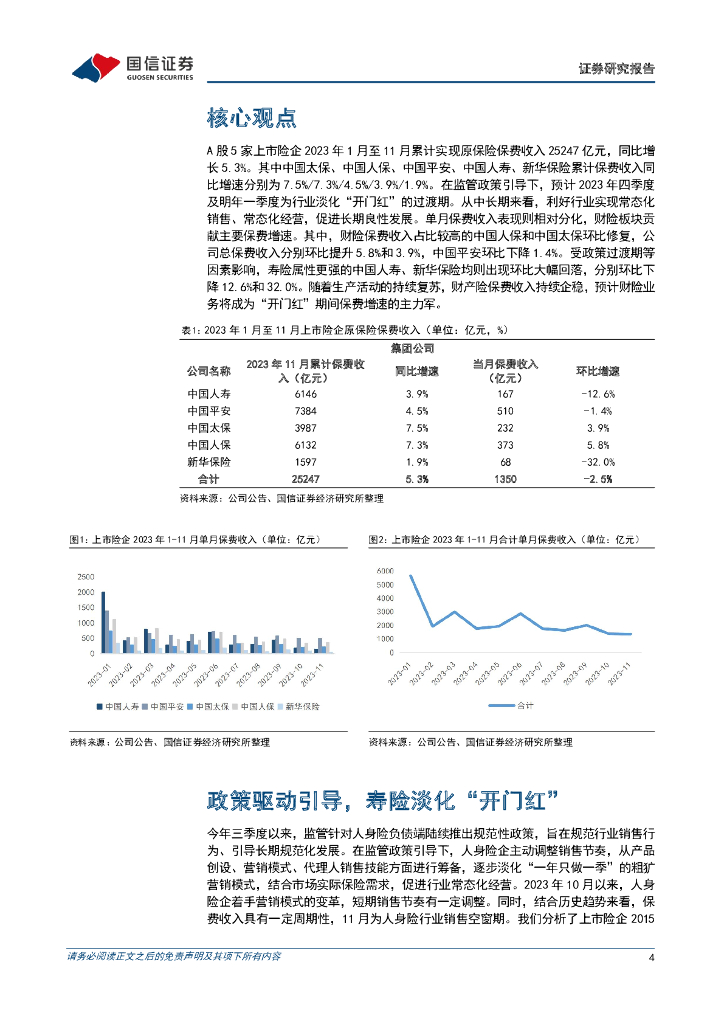 国信证券:2023年11月保费收入点评:淡化“开门红”,回归价值本源.pdf